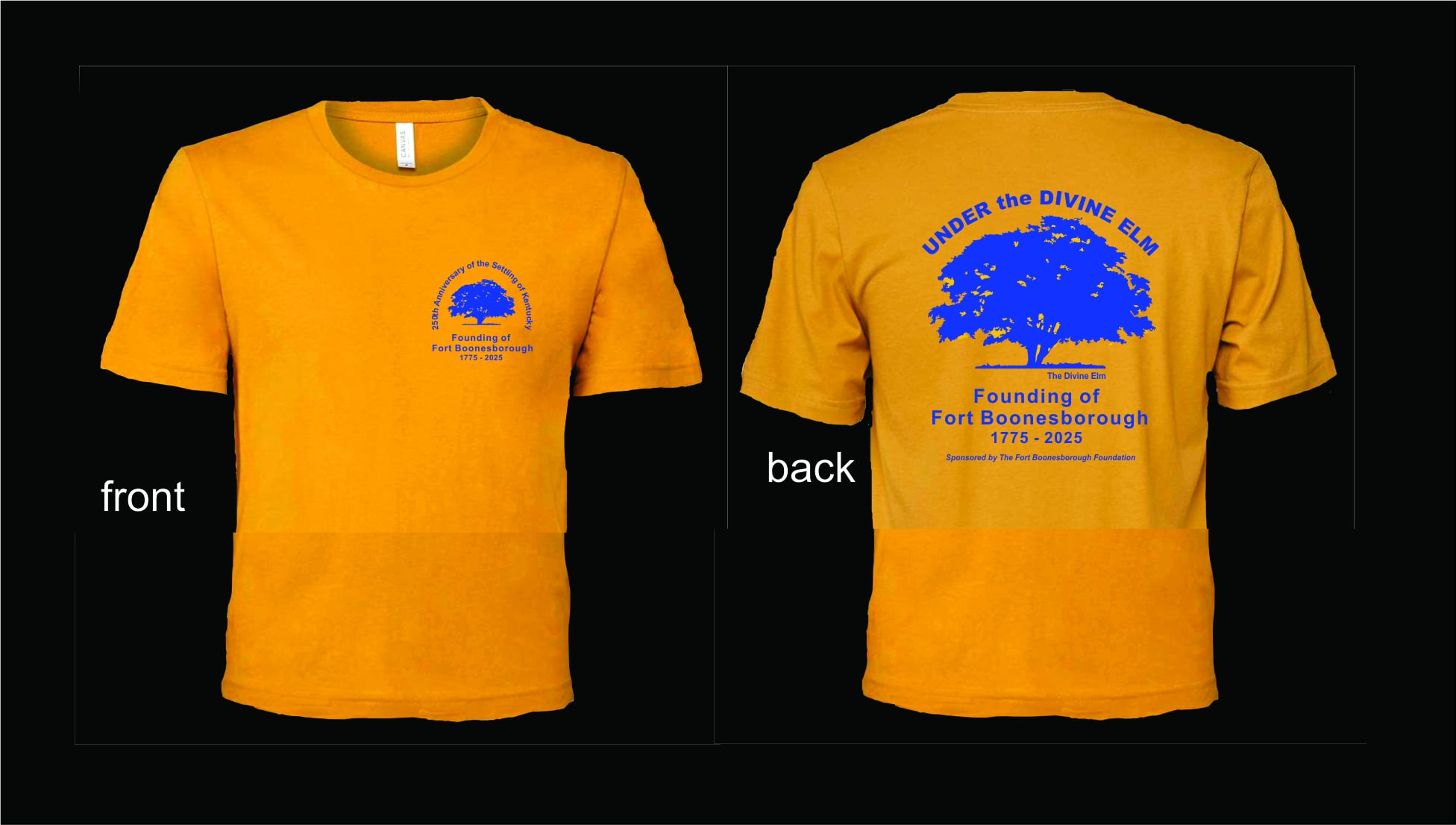 250th Logo printed on front and back, Bella+Canvas Tee.