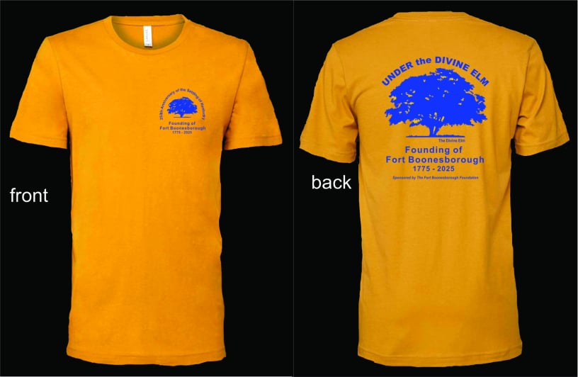 Sizes Small thru XXX. Features the Divine Elm tree. Royal Blue Ink on Mustard Tee.